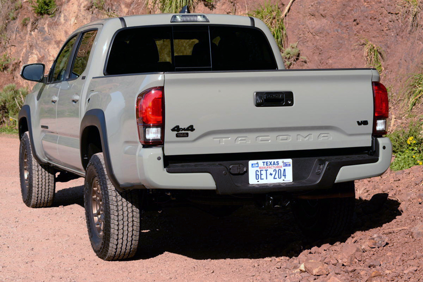 The Trail Edition also adds a locking rear differential to the part-time 4x4 propulsion system. Inside the cabin, black fabric seats with tan stitching add some visual pizzazz to an otherwise muted black interior. The driver's seat features electric adjustments for fore-aft travel and seatback inclination, while the passenger's seat requires manual control. The TE's big news lies inside the short bed, where a the pair of lockable storage boxes are affixed to both sides of the bed. These offer enough space to conceal a substantial stash of goods, tools or valuables. They can be removed for more bed storage if needed. And the best part of the deal is the left side box doubles as a cooler. With a 120v outlet in the bed, you're also set for tailgate party duty. These bed boxes are not available on any other Tacoma.