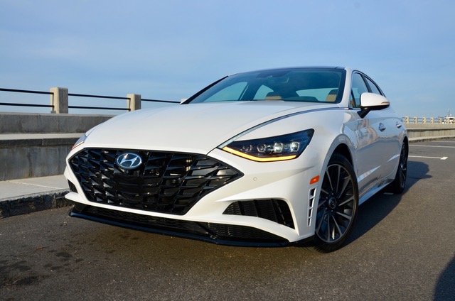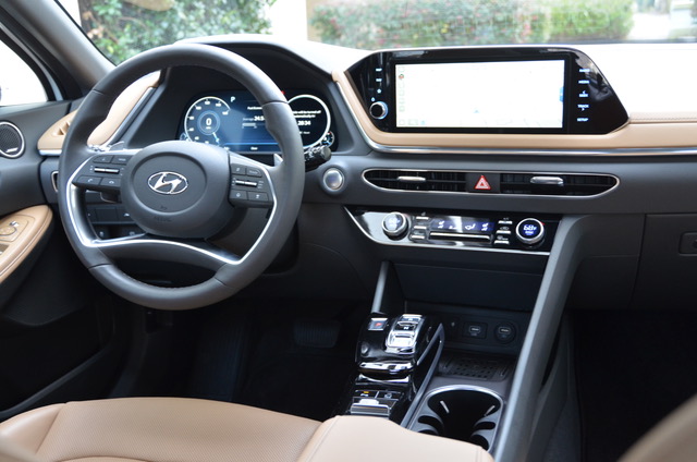 I got reacquainted with the Sonata in a recent drive in a Limited trim version finished in Quartz White with a Tan interior. The Sonata’s design is eye-catching. It sits low with an overall nicely balanced appearance. It’s also well-equipped and roomy as a family sedan should be. The trunk opening is large and there’s plenty of space inside.