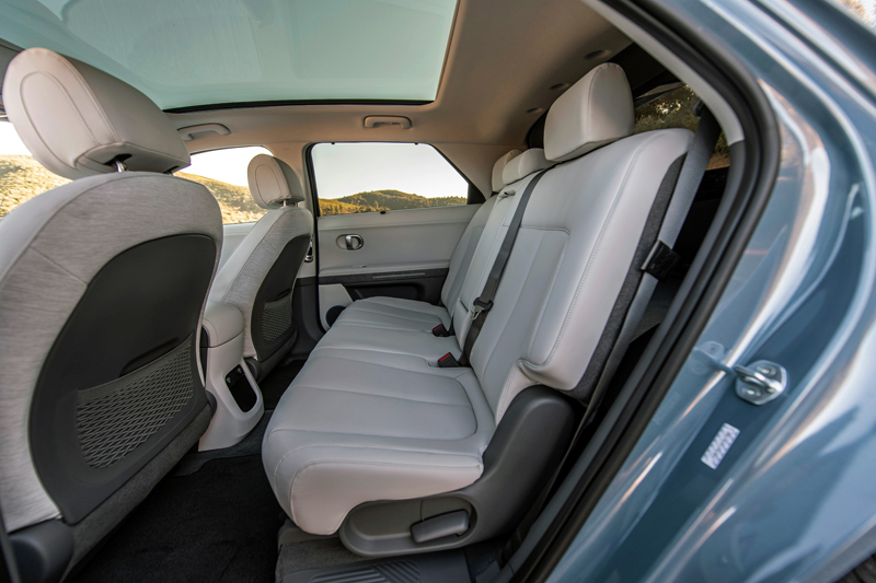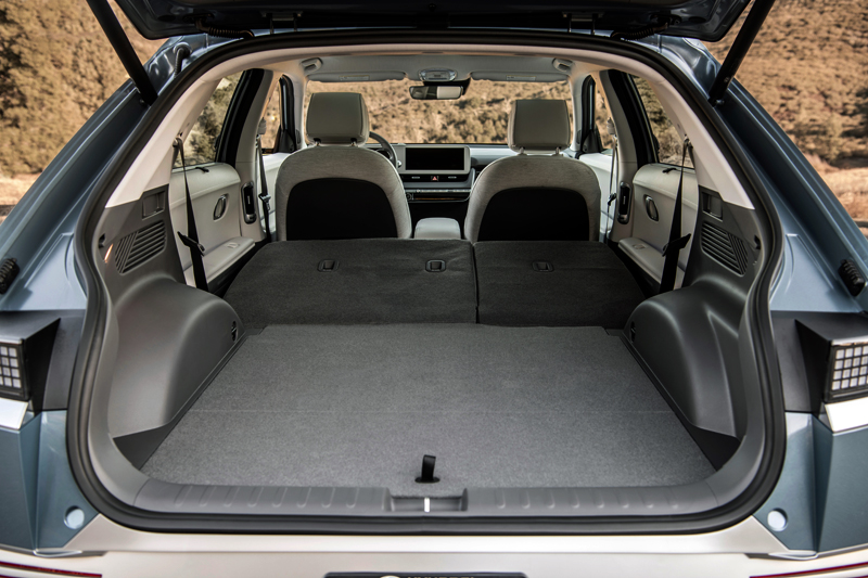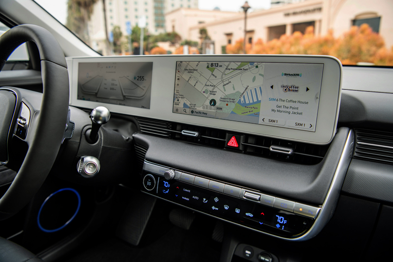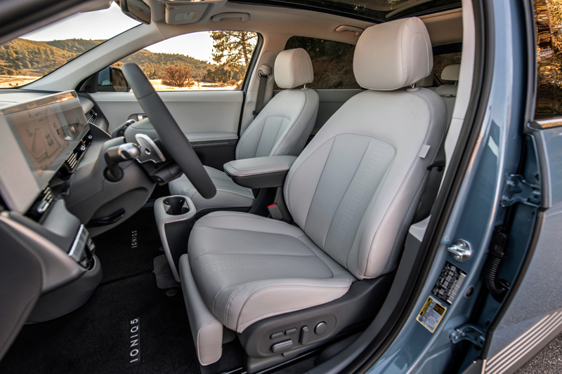 The all-wheel-drive Ioniq 5's muscle derives from a total 320 horsepower and 446 pound-feet of torque, courtesy its pair of electric motors. A getaway 0-to-60-mph time of 5.2 seconds is possible, however if you are into fuel cost efficiency there is a multi-stage regenerative braking system with a one-pedal mode. The suspension is silky smooth, and the low center of gravity creates steady handling. The lack of internal combustion vibration and noise creates a whisper environment for both conversation and music.