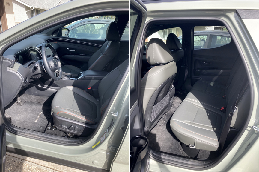 There is seating for five adults in the Santa Cruz. Hyundai says there's a tad over three feet of leg room in the back but with the driver's seat set for me (I'm just under 6') there was less. The seats, front and rear, were comfortable.