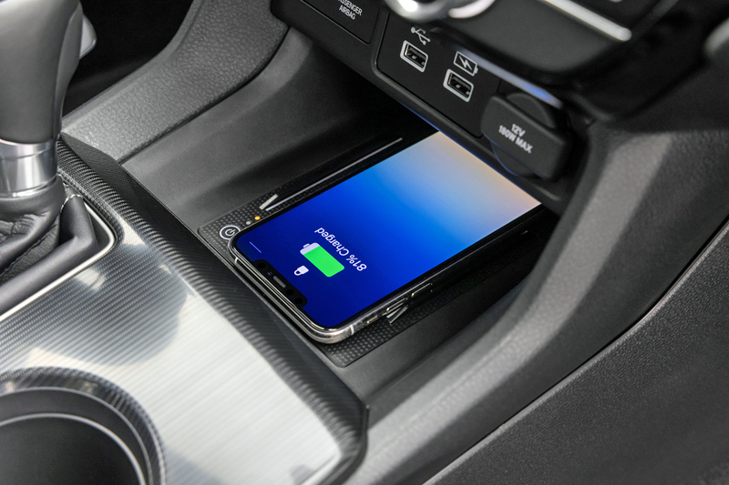 and a cell phone charging platform that is much easier to use than convoluted shelves found in many vehicles.
