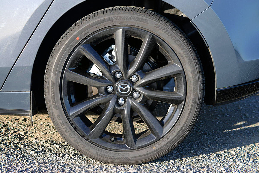 The Mazda3 clearly benefits from its parent company's ceaseless immersion in worldwide racing. Dynamic Stability Control interacts with the Traction Control System in such a seamless way that you never feel your driving decisions are being contradicted by artificial intelligence. Mazda's patented G-Vectoring Control Plus and I-Activ AWD combine to keep the 215/45R18 Bridgestone Turanza EL 440 M&S radials planted on terra firma. The salient point about Mazda3 driving is this: you never feel like you're fighting the vehicle for control of a given situation. Rather, this hatchback enhances your inputs to achieve a magical human/machine interface.