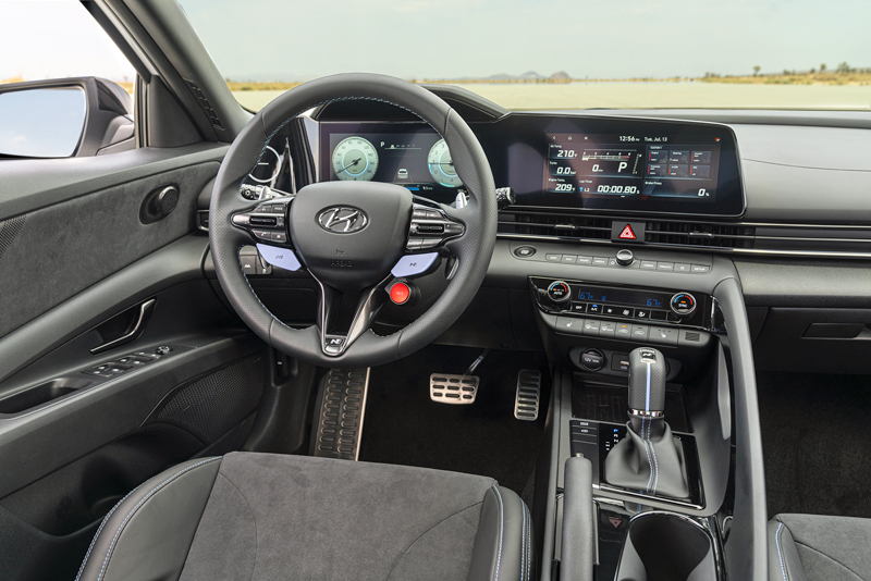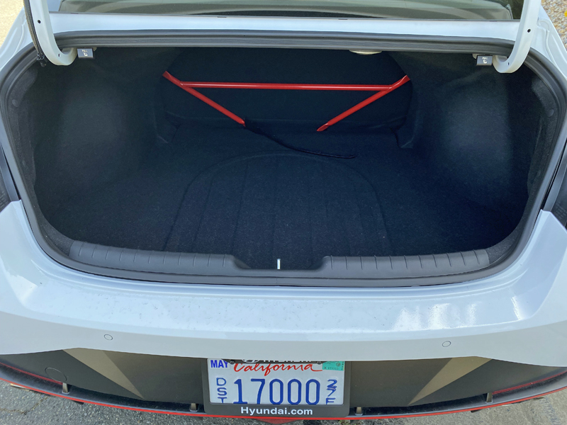 ELANTRA N is powered by a 2.0-liter, turbocharged, direct-injected flat-power engine with an eight-speed wet, dual-clutch transmission. That outputs of 276 horsepower 289 lb.-ft. of torque transferred to a close-ratio six-speed manual gearbox. On city streets, I found myself shifting 1-3-5 a lot. For the best analysis of the performance tech I refer you to David Colman's review on this site. As a veteran pro racer, David can tell you what to expect if you are going to do track time. ADVISE: Having put in some laps on the biggest three Northern California tracks, I can with confidence say that it will pay off greatly to take a pro class to find out what both you and your N can and can not do.