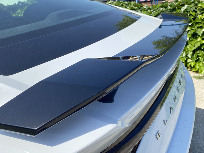 The angular spoiler is either a stylish identifying touch or it holds an aerodynamic secret. Or both, or neither. Either way it's cool.