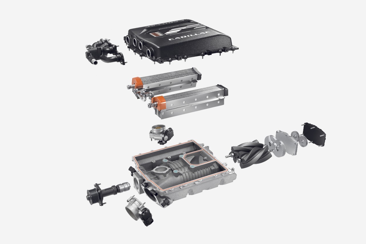 Rated at a GM-estimated 682 horsepower at 6,000 engine rpm and 653 lb-ft of torque at 4,400 engine rpm, the Escalade-V’s 6.2L hand-built supercharged and intercooled engine builds on a legacy of supercharged V-8 engines offered in Cadillac V-Series models, those being the second- and third-generation CTS-V models, the XLR-V, and most recently, the CT5-V Blackwing.