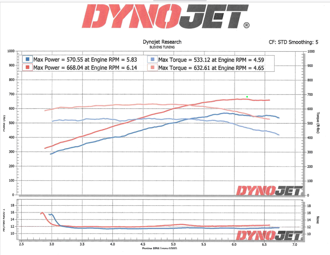 Dyno day! I do not know if you have ever had your car dyno, but it is the most butt hole clinching feeling in the world lol. As your car is making a full pull, there is a very uneasy feeling that builds up with every rpm wondering if it is all going to hold together or scatter right before your eyes. After a few hours of getting her dialed in I will say I was quite pleased with the results. Just look at the numbers! The blue line is pump gas, and the red line is E85. An overall gain of 100 hp and 100 ft lbs. of torque at the wheels! Not to mention how much smoother the power curve is with E85. So, was it worth it? Does a bear poop in the woods? The simple answer is YES!