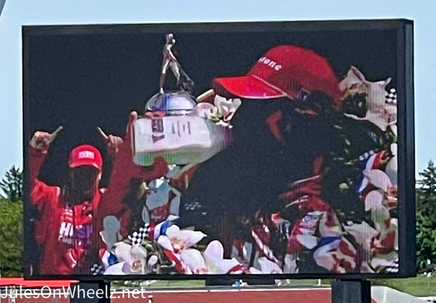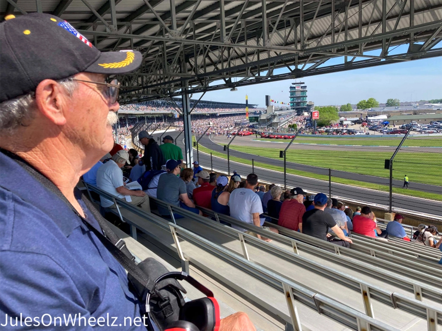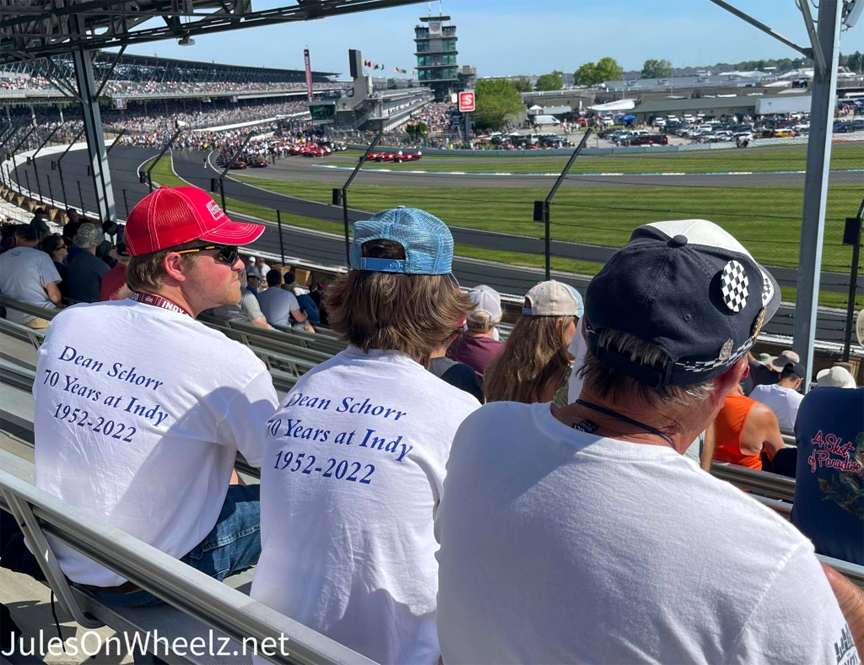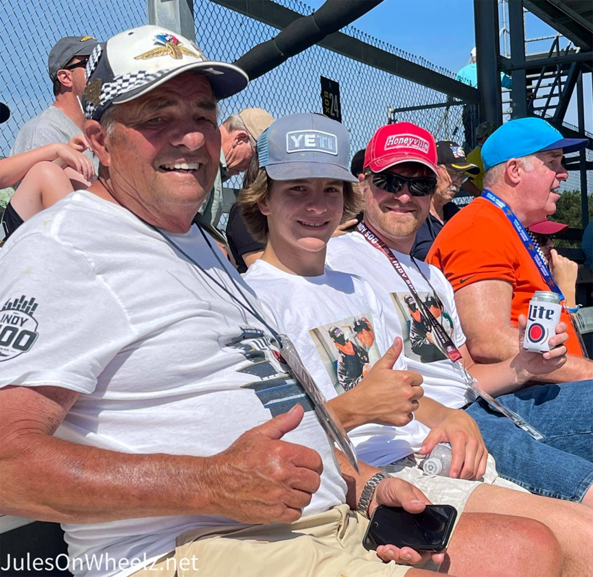 Dean Schorr has been attending the Indianapolis 500 for seventy years. How do I know this? His grandsons had t-shirts! They happened to sit right in front of us in our section. A few short hellos and we made that personal connection that is Indy. Grandsons Tyler Reinneck and Carter Toal sit next to their grandpa with pride. The threesome are at the track after a tough couple of years missing a special lady, named Ellen. You see, Ellen was Dean’s wife who passed away on his birthday 12/20/20 from Covid.