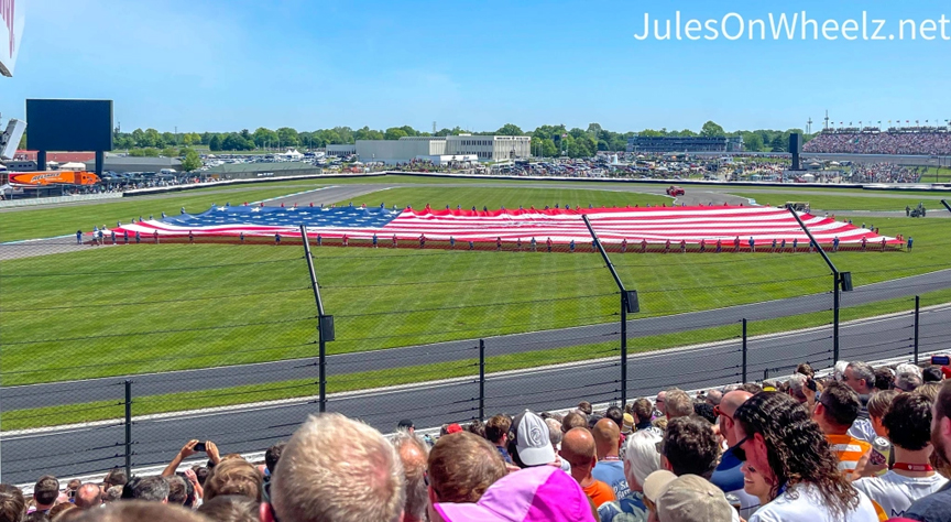 I confess, I cried at the start of the race. Maybe it was the Purdue Marching Band or singing the National Anthem. Songs echoed like “Back Home in Indiana” and “America the Beautiful”. Hats removed and heads raised as the Thunderbirds buzzed the stadium not once but twice.