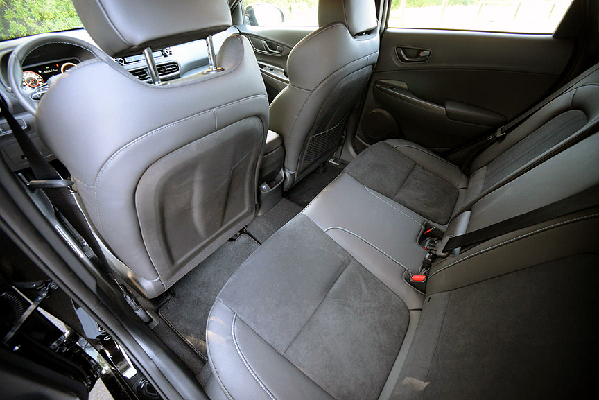 A similar warning extends to the Pirelli P Zero radials (235/40R19) which give the Kona amazing levels of grip in dry conditions but are "not for use in snowy or icy conditions." The Kona corners on rails with these Pirellis generating amazing lateral grip. A red metal button attached to the steering wheel is marked with the letters "NGS" which stands for N Grin Shift. Press this button, and the engine will provide over-boost and extra horsepower for a limited number of seconds - just like the "Push to Pass" button used in Indycar racing.