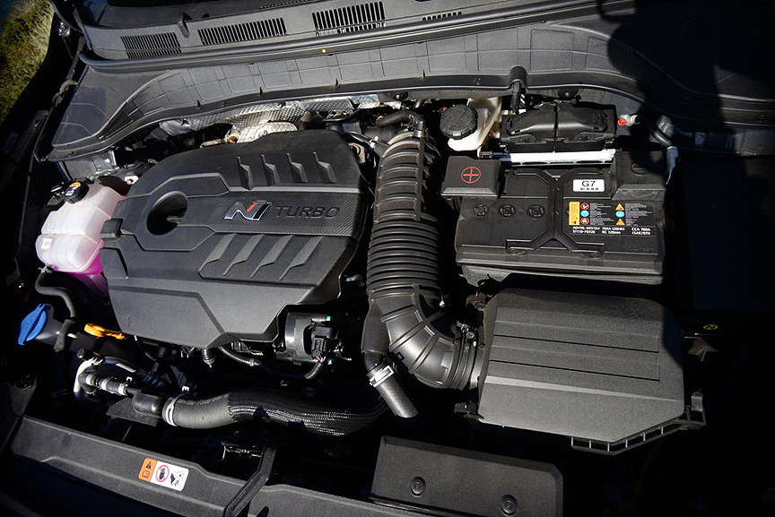 In the center of the tach, an oversize digit conveniently indicates the gear you have selected. Thus does Hyundai provide all the pertinent information you could possibly need for competitive event driving, right down to a lap timer. Further fine-tuning is available for engine, suspension, e-LSD, steering, transmission and exhaust resonance. In Sport setting, you get the Rice Crispy exhaust note - lots of snap, crackle and pop. The Owner's Manual cautions you not to choose this setting when driving in densely packed residential neighborhoods.