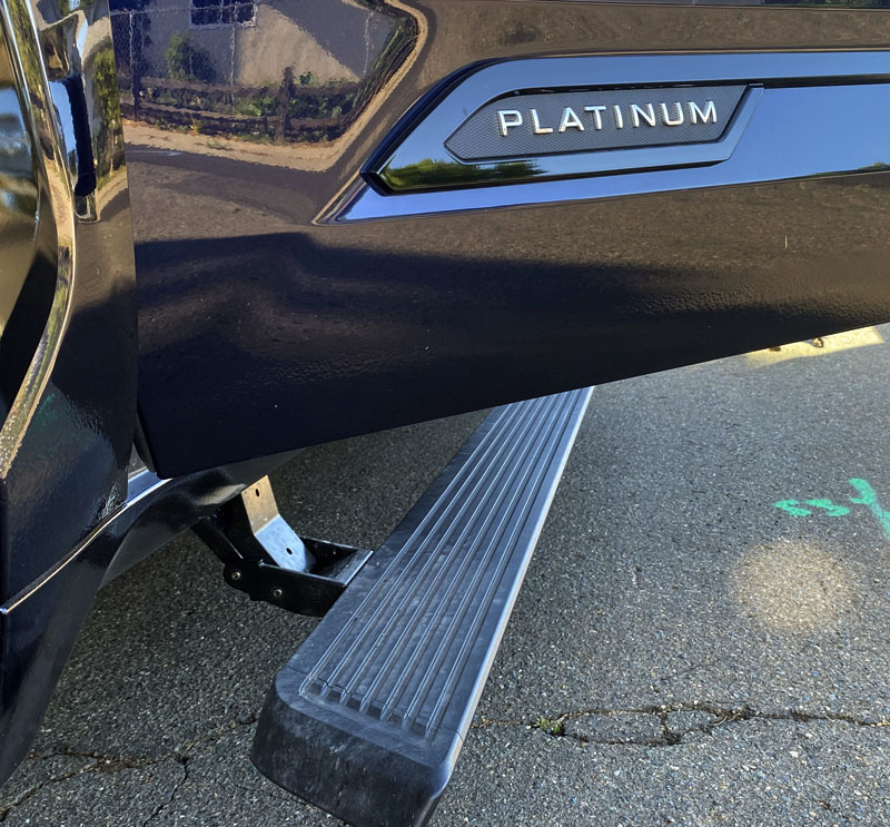 Stepping up into any of its 4 doors you will be greeted by an electronically cued automatic running board - that got thumbs-up reviews from short limbed passengers.