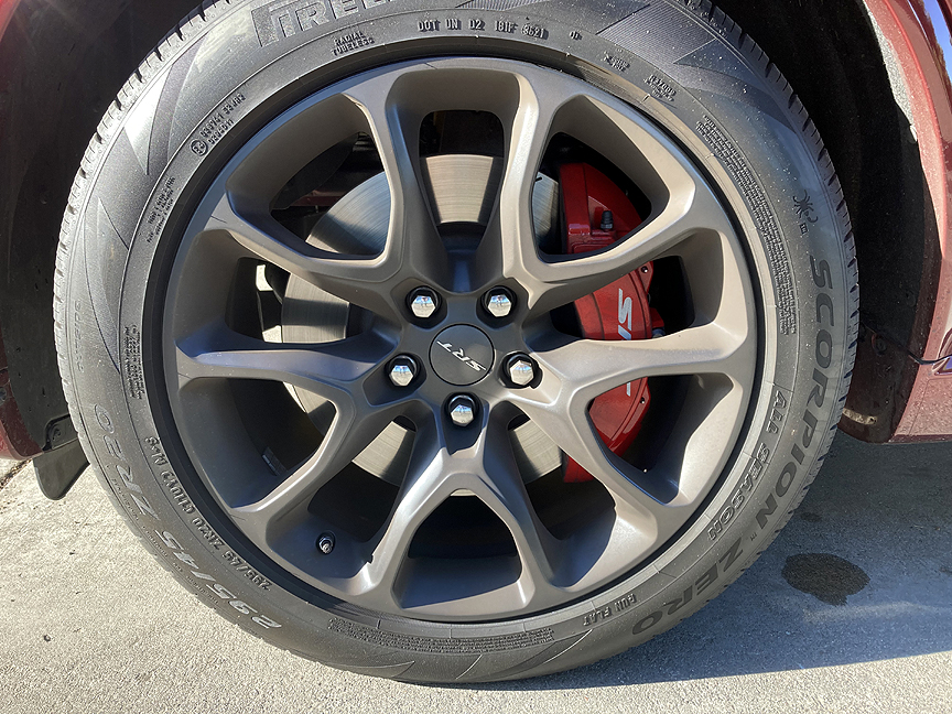 To stop the 5,378 lb. SRT, Dodge installs 6-piston Brembo calipers with 15" rotors on the front, and 4-piston Brembo calipers with 13.78" rotors on the rear. Trust me this thing stops!