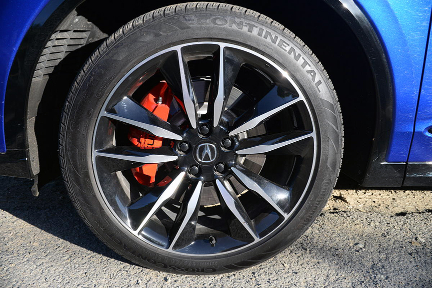 Our Advance specification MDX planted 20-inch platinum silver alloys at each corner. These sparkling rims bore 255/50R20 Bridgestone Alenza Sport A/S mud and snow-rated rubber. The SH-AWD (super handling all-wheel-drive) description lived up to its name by providing a torque-vectoring rear differential which apportions drive to the wheels enjoying the best adhesion. In a corner, 100% of the drive goes to the outside rear wheel. When cruising in a straight line, 90% of the drive goes to the front wheels in order to conserve fuel. Although our luxuriously appointed MDX weighed too much to feel really comfortable on backroad switchbacks, its handling was secure and predictable in Sport setting. We did, however, notice some jarring ride intrusions over bad pavement, even with IDS set to the Comfort setting.