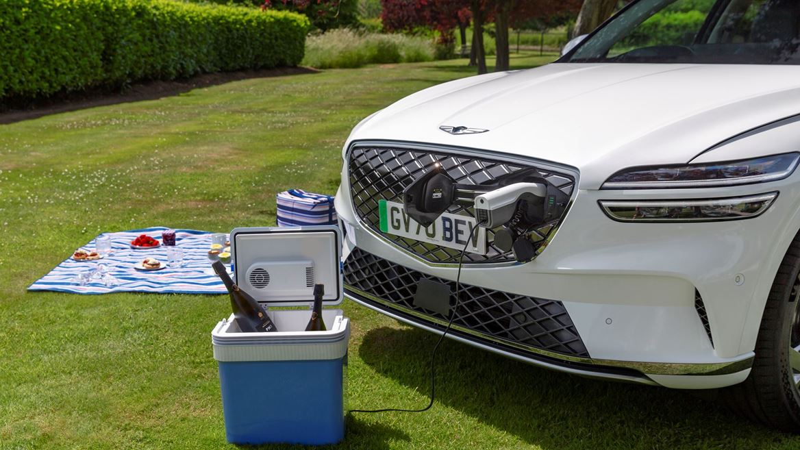 To celebrate Electrified GV70’s European unveil at Goodwood Festival of Speed, four short films will go live across the weekend. Using vehicle-to-load (V2L technology) Electrified GV70 is shown powering multiple Goodwood household appliances and assisting with wider estate services – showcasing the innovative technology of the car and the multiple ways in which it can be used. The vehicle-to-load function works by using the car’s battery to supply auxiliary power to electrical devices outside of the car, with an output of up to 220v or 3.6kw – more power than is generated by the average house. The car can become a mobile power bank to supply electricity to anything from gardening equipment and domestic appliances to camping equipment and e-bikes.