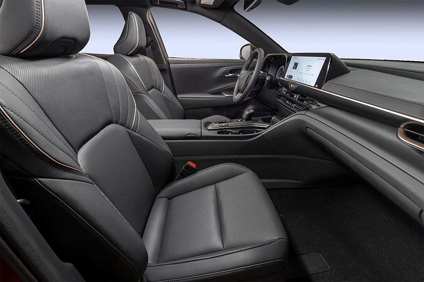 Dual zone climate control is also standard for all grades. A thin, attractive illuminated control panel runs along the dashboard, just below the multimedia screen, with frequently used functions placed on the lower row keyboard switches. All Crown grades also receive a 12.3-inch color MID. Drivers can select different displays with the push of a button, including a Hybrid System Indicator showing the driver system output and regeneration status to encourage eco-driving habits. As used on other Toyota hybrid models, the display suggests the optimal acceleration amount for eco driving.