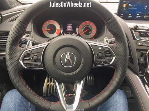 My chariot was well equipped with Acura's SH-AWD (Super Handling-All Wheel Drive) and the A-SPEC package that included leather trimmed sport-seats with suede inserts (ventilated of course), ELS Studio 3D Premium Audio with 16 speakers, and 20" black alloy wheels. No creature comforts were excluded. It enveloped when entered and made one never want to leave.