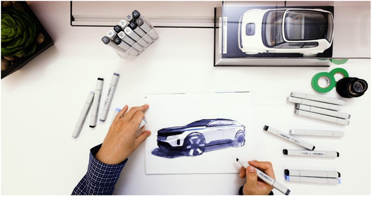 Sang-Hyuk Ahn, exterior designer, creating a key sketch of Prologue