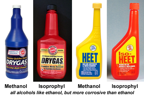 Examples of this are Dry Gas and HEET. If having alcohol in a fuel system is bad, why would anyone intentionally use products like these that are just more alcohol? They wouldn't, but because the alcohol is not the cause of the water problem, it's the solution to it, then Dry Gas, HEET, and ethanol that's already blended with gasoline are used. In fact, ethanol already blended with gasoline has made Dry Gas and HEET redundant.