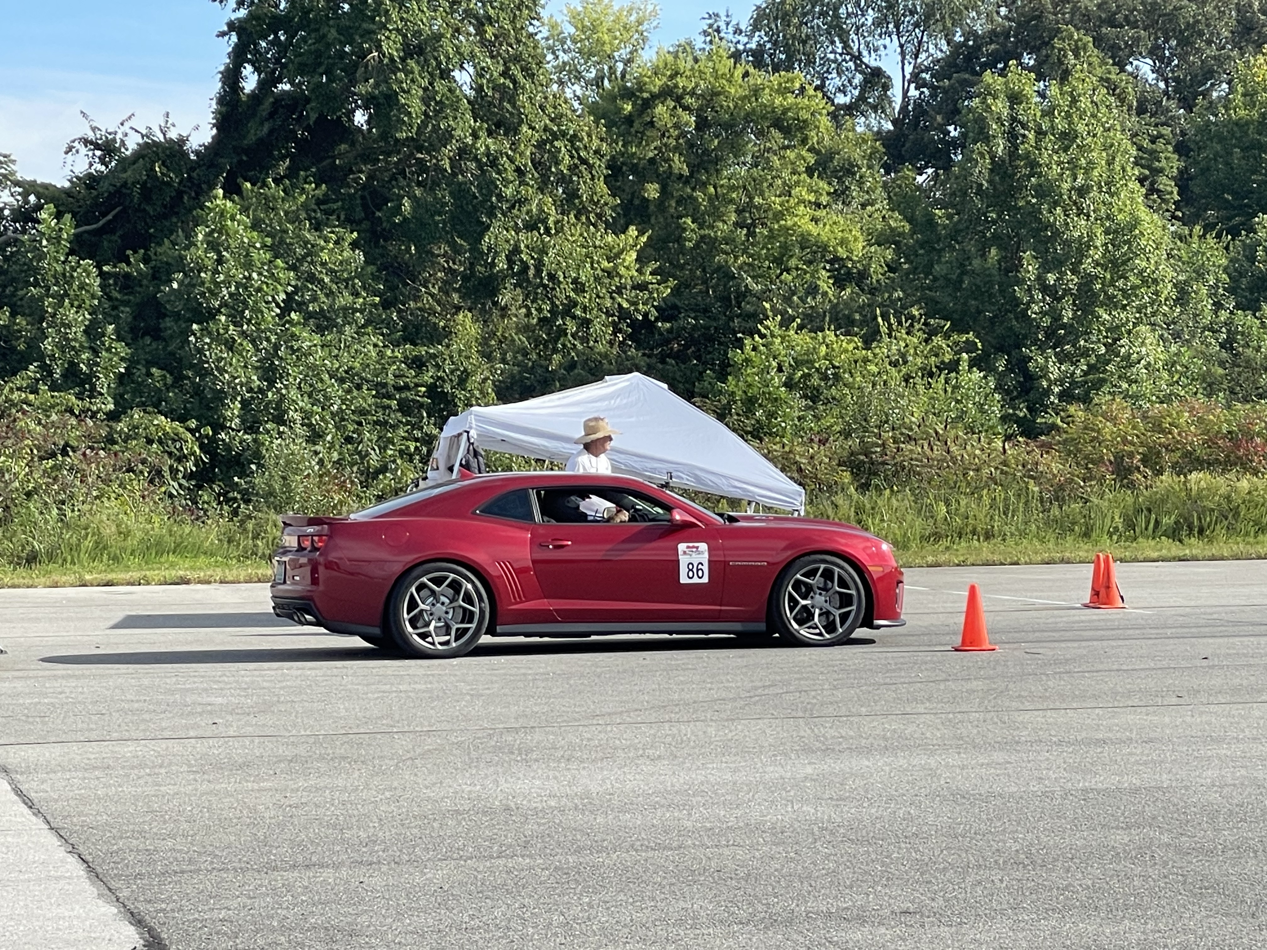Bertha isn’t really set up for autocross. Hard tires up front, soft tires in rear, ceramic street brakes, and weighs as much as a truck. I figured what the heck, it's different from drag racing and it may be something I would enjoy. I was intimidated by the layout, which consists of cones that map out the track. Some pointing in certain directions to let you know that’s the way to go. My biggest concern was getting lost in the maze of cones. I noticed everyone walking around on the skid pad where the cones were laid out. I was informed by a fellow competitor that everyone was walking the course layout, planning their course of action. Every little move counts for tenths, or even hundredths of a second, which all add up at the end. Smooth is fast, and picking your line is very important. My first run was like Driving Miss Daisy, I took my time due to my main concern of getting lost on the course. My finish time was just shy of spectacular, lol.
