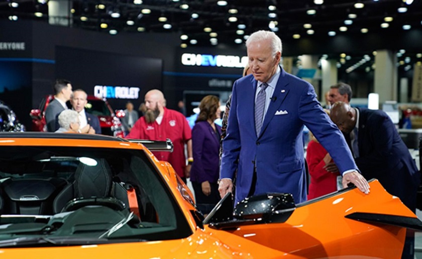 Prsident Biden came at the invitation of Governor Whitmer to tout the initial 900 million bucks going into EV charging infrastructure as part of the 5 billion that will be invested overall through the new Infrastructure bill. He hopped into a few cars including a vivid orange, mid-engine Corvette. Biden, we understand, still owns a ’67 Stingray. We finally got onto the show floor by mid-afternoon to a decidedly underwhelming scene.