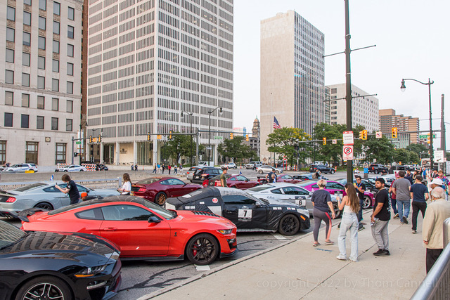 Thousands of Mustang lovers showed up for the drive and the party where Bill Ford presided. I doubt any were disappointed. The new car’s styling is certainly a full generation more modern, sharp and aggressive while preserving the expected Mustang ambiance. Mr. Ford confirmed lots of Mustang varieties will be offered including racing versions. And, he announced that one of those racing varieties will take them back to LeMans.