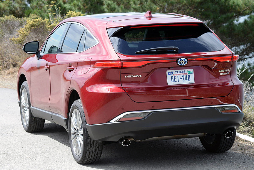 For the first time in seven years, Toyota is once again offering the Venza SUV. The original production run, from 2008 to 2015, offered both in-line 4 (181hp) and V6 (268hp) models. The newly reintroduced hybrid version offers just one drivetrain: a 2.5 liter 4 augmented by 3 electric motors to produce 219hp. Although peak horsepower of the hybrid substantially lags the old V6, the latest Venza weighs 275 pounds less than its predecessor. More importantly, fuel mileage has increased dramatically, from 18MPG/25MPG to 40MPG/37MPG. Acceleration of the new hybrid is quick enough to satisfy most driving demands. The Venza Limited we tested covers the standing start quarter mile in 15.8 seconds at 89mph, and sprints from 0-60mph in 7.6 seconds. While you probably won't be taking it to the Wednesday Night Drags at Sonoma Raceway, the reborn Venza is still quick enough to cope with most two-lane passing challenges.