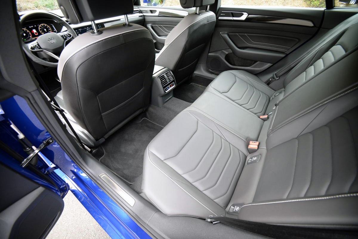 The Nappa leather driver's seat in the loaded SEL Premium R-Line we tested had every emendation to make long stints in the saddle tolerable: heating and ventilation, power adjustability, massage function, and position memory. The leather passenger's front seat shared heating, ventilation, and power adjustability. Limousine-worthy rear seat passengers are catered to with heated outboard seats, adjustable vent ducts, and 13 inches of knee room. If you can't get comfortable in the Arteon, you can't get comfortable anywhere.