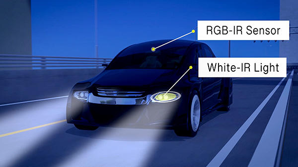 Kyocera's system integrates both white and near-infrared light from a laser headlight on a single optical axis. This eliminates image parallax and greatly enhances image recognition. The integrated headlight also incorporates an extremely bright, high-efficiency, miniaturized GaN laser developed by KYOCERA SLD Laser, Inc. Furthermore, the system has automatic "beam shaping" functionality for the RGB and NIR light that prevents glare for oncoming drivers by automatically shifting visible light into a low-beam pattern when necessary, while the NIR light can remain in high-beam mode.