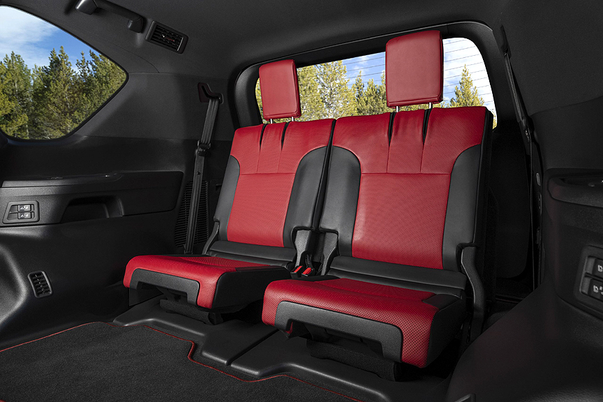 The 3.4-liter V6 twin-turbo gasoline engine (V35A-FTS engine) produces an output of 409 hp (415 PS) and maximum 479 lb.-ft. of torque and maintains maximum torque in a wide range up to about 3,600 rpm, making it easier to handle not only during on-road driving but also during off-road driving, which can require frequent use in the low-speed range.