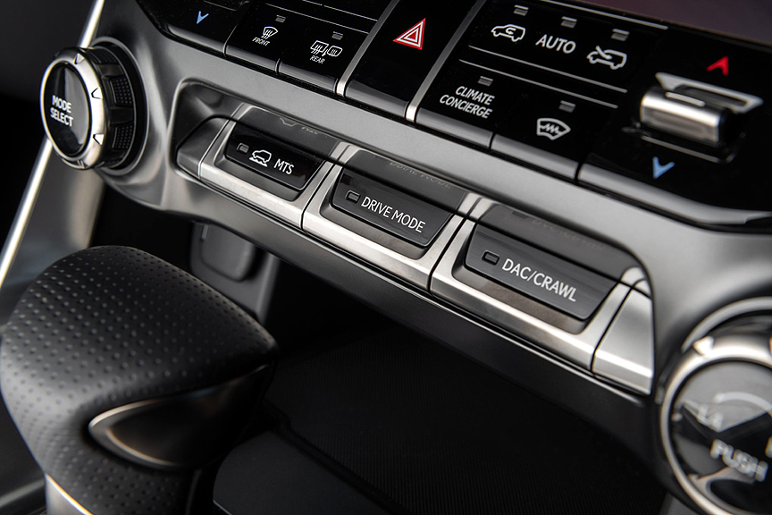 LX also features Multi-Terrain Select, which allows the driver to select from six modes – Auto, Dirt, Sand, Mud, Deep Snow and Rock – to support off-road driving conditions. In addition to conventional brake hydraulics, the drive power and suspension are integrated and controlled for optimization according to the selected mode, making it possible to match driving performance to road conditions.