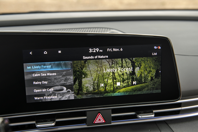 The 10.25-inch touchscreen has wireless Apple CarPlay and Android Auto integration. Should you tire of musical and news content there is a sounds-of-nature option that can make for a pleasent change of mental space. The Bose® sound system features eight speakers, subwoofer, and applause from passengers both young and old.