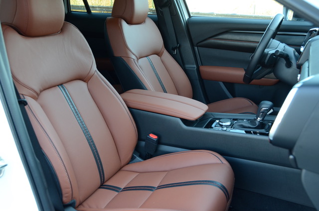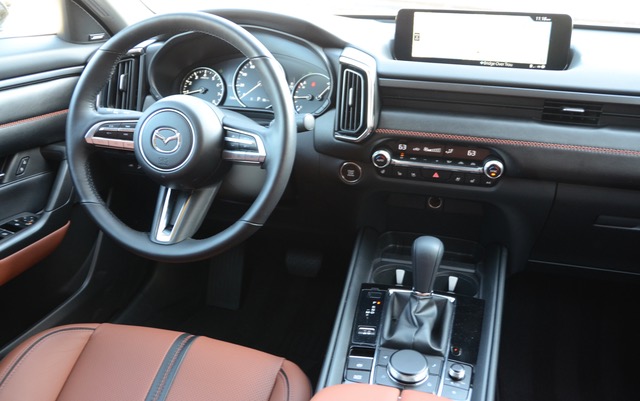 Inside, Mazda provide nicely comfortable and supportive seats. Rear doors open ninety-degrees for easy entry. Apple CarPlay, Android Auto, and Bluetooth wireless connectivity support smartphone use. There’s a 10.25-inch touchscreen on all models except the base 2.5 S which gets an 8.8-inch version. Heated and ventilated front seats and a heated steering wheel are available.