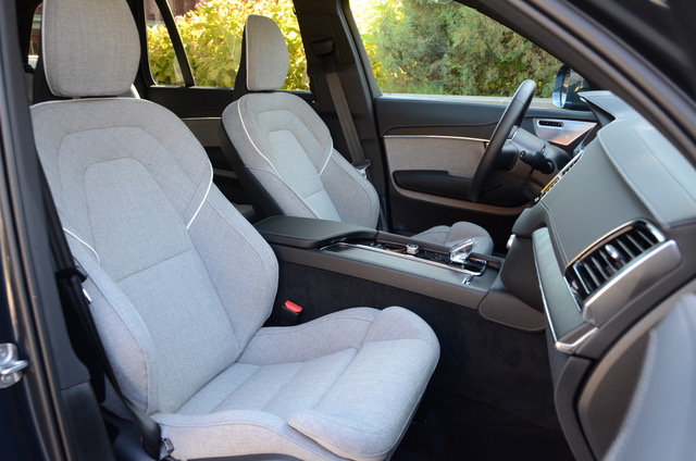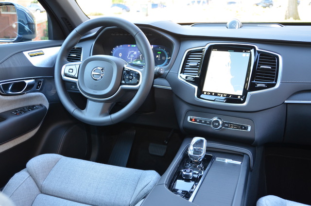 The cockpit front seating area is plenty roomy with good outward sight lines and ergonomically well-placed switchgear. I drove a seven-seat XC90 with a center three-person bench which features an integrated center booster cushion. Seating is for two in the third row. A six-seat option is also offered with two individual center seats.