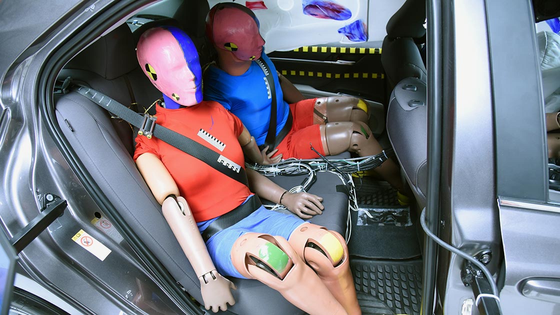 To push automakers to address that widening gap, the new test incorporates a second Hybrid III dummy representing a small woman or 12-year-old child positioned in the second row behind the driver and utilizes new metrics that focus on the injuries most frequently seen in rear-seat occupants.