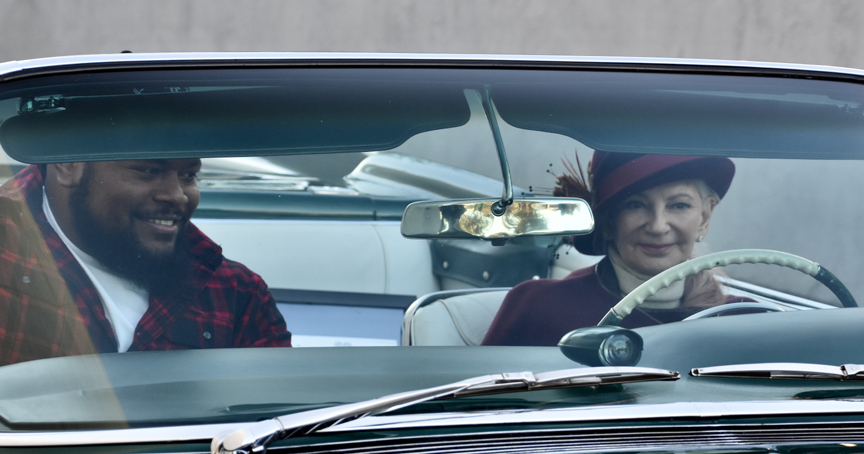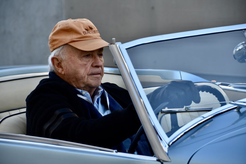 Most interesting for me turned out to be the opportunity to get great closeup shots of the drivers and passengers in these rare, valuable and significant automobiles. Many appeared to be husband and wife, a few looked like brothers, some dads and sons or grandpas and grandkids. We found more young women than you might expect behind steering wheels. A kitschy, blue “Shark Fin” Cadillac convertible, with top down in spite of the cold, entered the field driven by an elegant, stylish, tiny older woman accompanied by what appeared to be an offensive lineman for a pro football team. (I need to get the story on that one.)