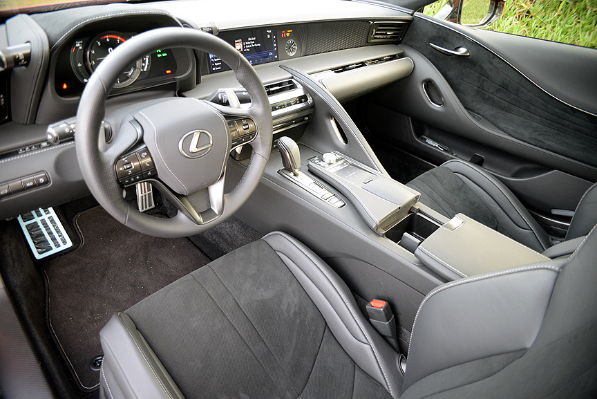 Even in "Normal" Drive Mode, the LC will straighten challenging curves with disdain. Dial up "Sport" or "Sport+" from the pinnacle mounted Mode select knob, and the LC hunkers down on its finely tuned suspension to give you the thrill ride of your life. This coupe redefines what the Lexus brand is all about these days: an expected veneer of velveteen luxury deceptively layered over the unexpected core of a snarling beast.
