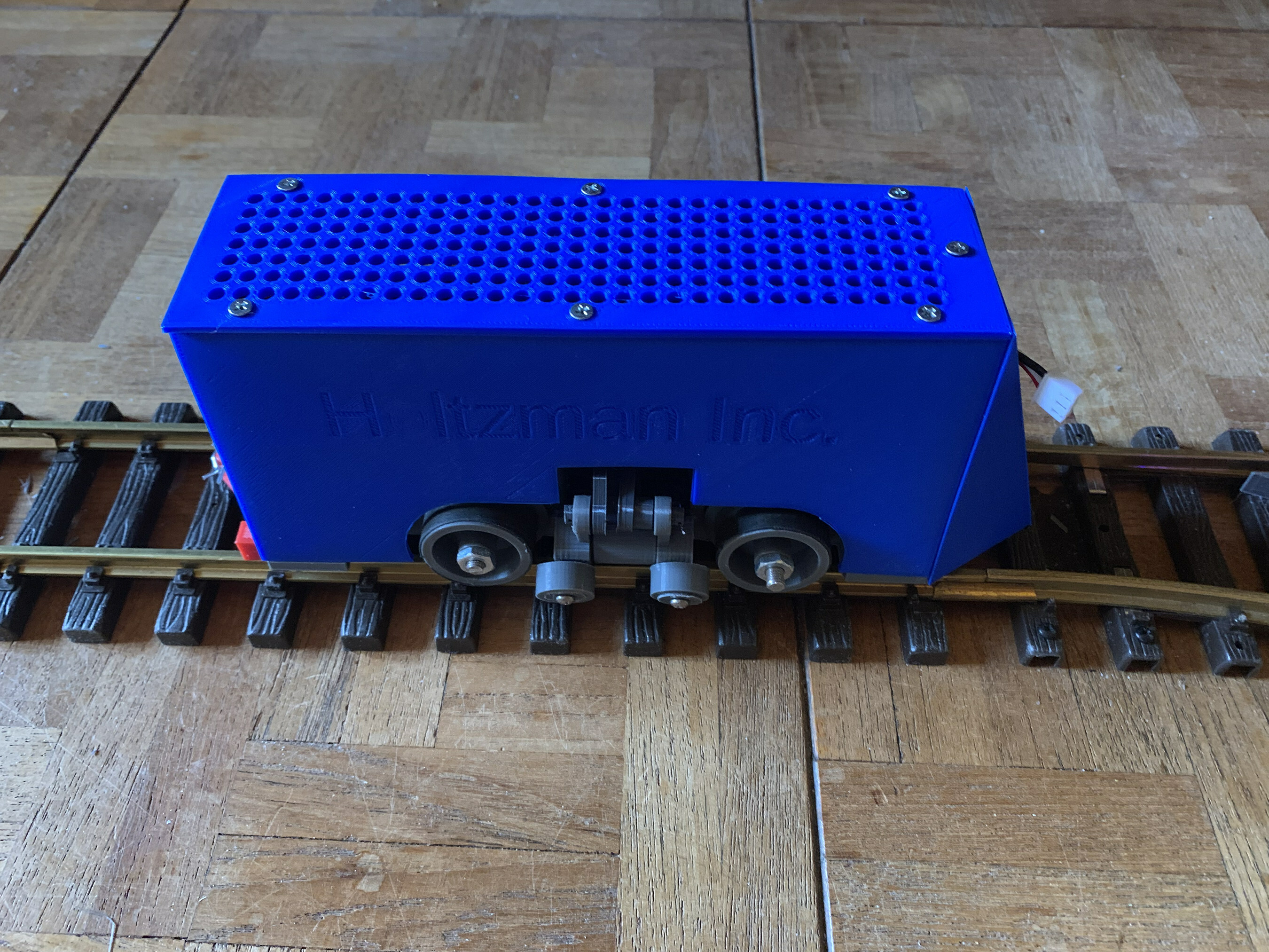 The invention is being first marketed as a toy to demonstrate the potential of this invention. It was originally introduced as a solution for traffic gridlock and for reducing CO2 from transportation. This invention enables new types of energy-efficient transportation systems for delivering people and goods. The urgency of climate change does not allow the years required for a traditional adoption. The models shown at the train show are 3-D printed and files are available for download, so these toy trains can be available by Christmas '23. Two variants are available, one that can be driven with a RC controller, and a computerized version that can be controlled with Wi-Fi. Videos of the models are on the www.holtzmaninc.com website.