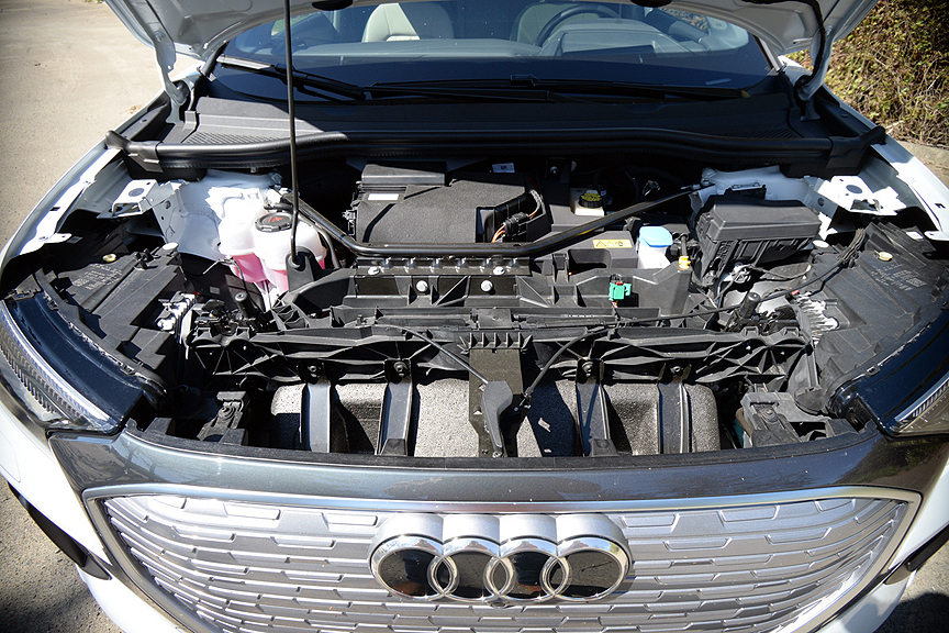 Other than its laundry list of quirks, the Q4 is a serviceable electric SUV, with plenty of acceleration, decent handling, and a big enough storage area to take a full-size mountain bike without a struggle. The quattro stands foursquare on a set of Bridgestone Alenza Sport A/S (235/50R20) all-season rubber. These tires are part of an $800 "20-inch wheel package" that provides "5-Y-spoke design wheels" finished in an eye-popping "graphite gray finish." Thusly equipped, the Q4 50 is good for a surprisingly quick trip up sinuous Route 1 without so much as a squeal of protest. In fact, the Bridgestone fortified quattro system offers so much lateral grip through the twisties that the Q4 is capable of staying with ostensibly faster traffic without even breathing hard.