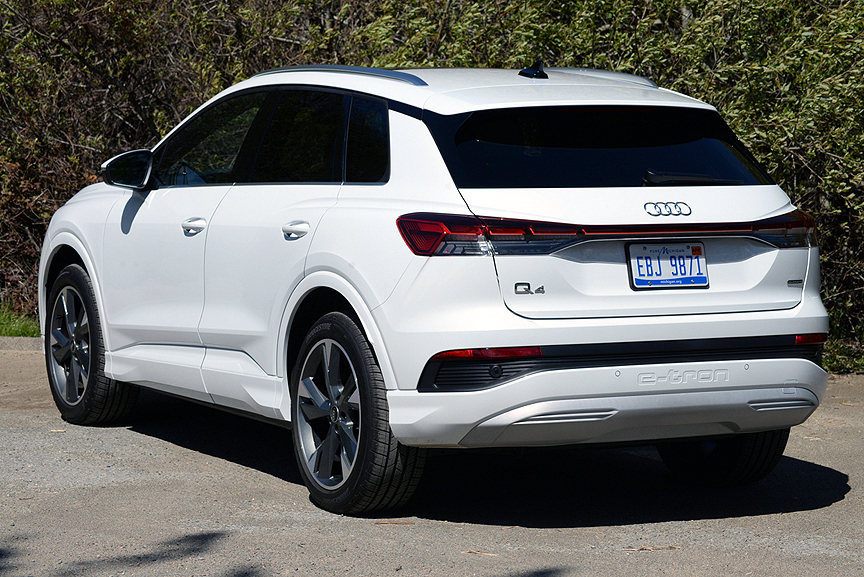 Audi offers two versions of the Q4 e-tron. The base model is designated Q4 40, which offers a single 201hp motor powering only the rear wheels. The 295hp Q4 50 we tested uses front and rear electric motors