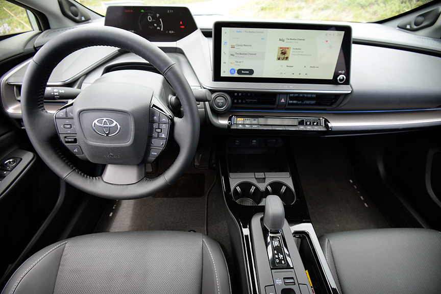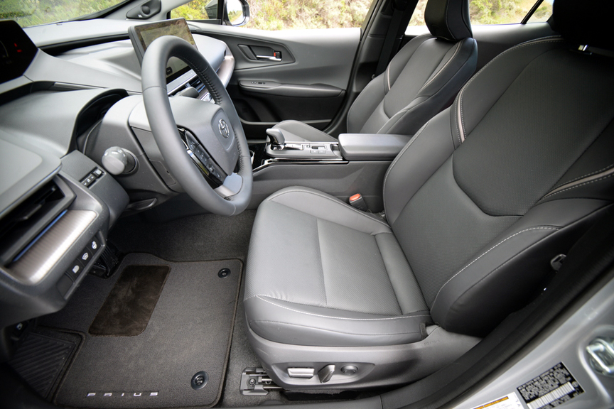 The elation continues once you climb into the comfortable, logical, and simplified cockpit. In Limited trim, the supportive front and rear seats are all heated, as is the steering wheel rim. The Limited boosts the standard Prius' 9-inch Multi-Media panel to 12.3 inches. Toyota situates an additional 7-inch Multi-Information Display panel directly in front of the driver, displaced nearly a foot forward of the steering wheel. This positioning puts it more clearly in your line of sight than a normal instrument binnacle's location. It's like having a head-up display without the fuzziness of window refraction.
