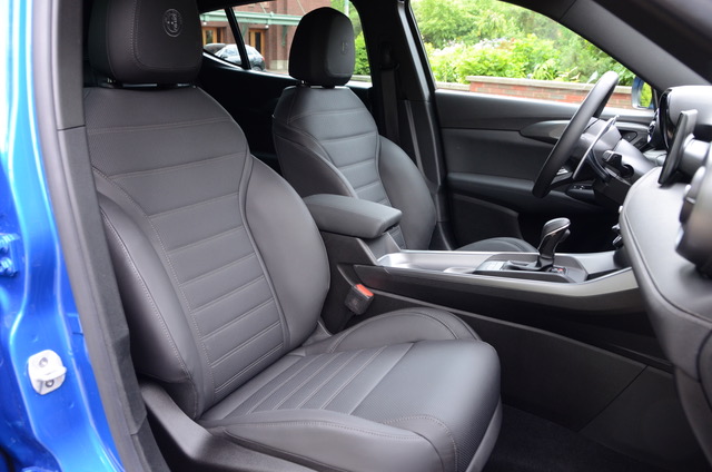 Like all Alfas the focus is on driving. Front seats provide good comfort and support for both the driver and passenger. Premium materials such as leather, Alcantara suede, and aluminum are welcoming as well as warm and stylish.