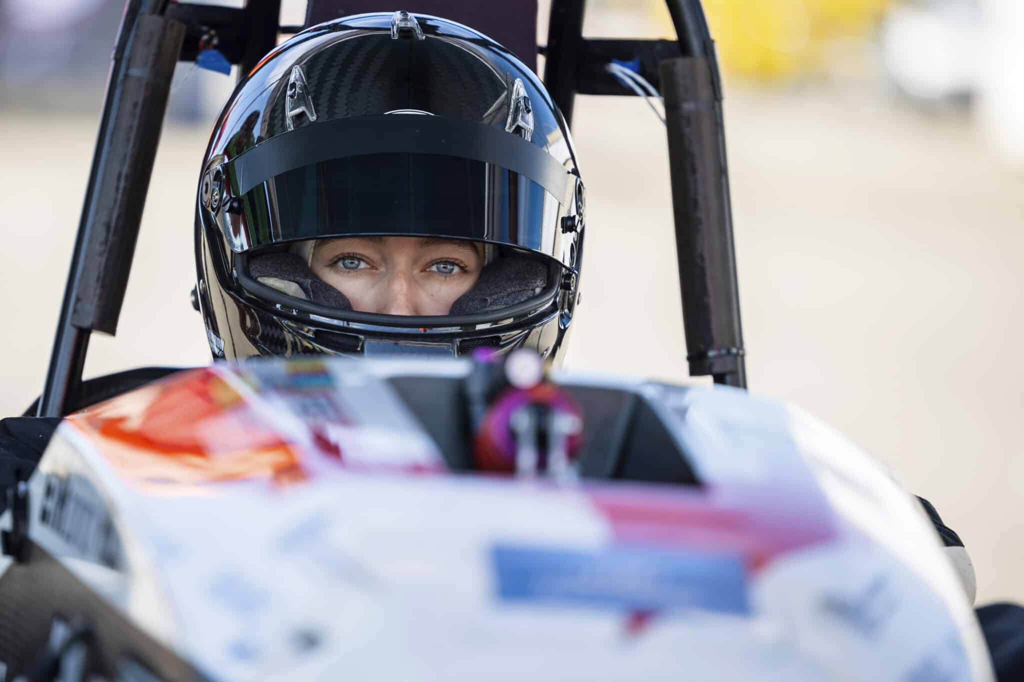 The vehicle's driver was named as Kate Maggetti, a friend of students involved in the project, who was selected "due to her light body weight" and "willingness to take on the challenge," Yann Bernard, head of motor at AMZ, told AFP.