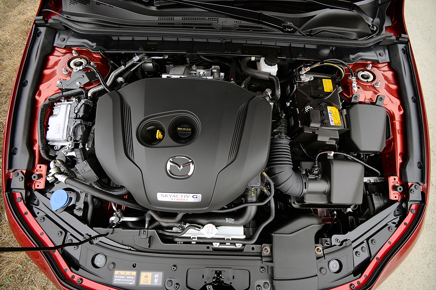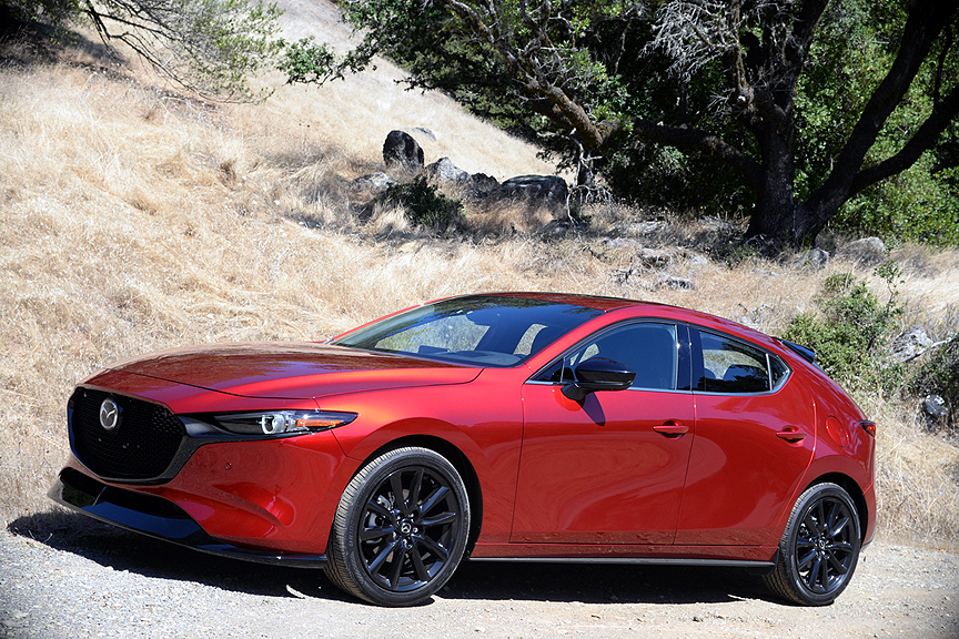 Mazda offers its nimble Mazda3 sports sedan in seven different versions, ranging in price from the Base model ($25,335) to the top line Turbo Premium Plus AWD offering ($36,650) that we tested. If you're willing to spend the bucks to surmount the highest rung on the ladder, you'll park a top-notch sports sedan in your garage. This diminutive but fiery Mazda weighs just 3,392 pounds, a notably buff curb weight that justifies calling it a sports car with seating for four.