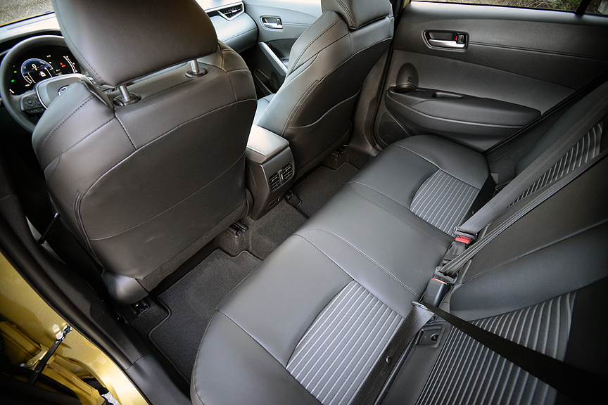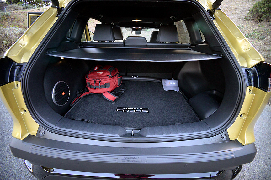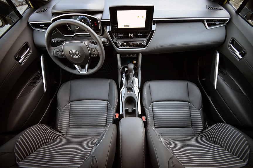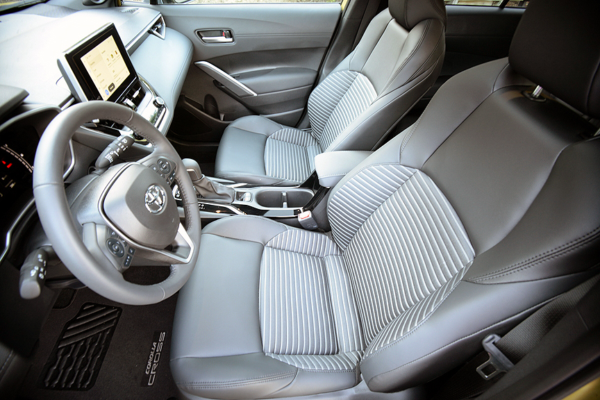 In fact, we found the cabin of the Cross to be well adapted to driver comfort, with its extra large digital information screen keeping track of speed, lane placement and adjacent traffic through the many monitors comprising Toyota Safety Sense 3.0. One of the benefits you enjoy in the Cross versus the Corolla sedan is improved all-around vision thanks to that 8-inch increase in ride height. The elevated driving position also helps significantly with parking chores.