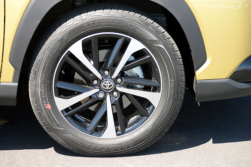 Toyota equipped our Cross with a set of Goodyear Assurance Finesse radials (255/55R18) that provided a pillow-soft ride on the freeway. On back roads, however, these all-season tires provided a moderate level of stick in keeping with the Cross' flaccid "Normal" steering response. Toyota does provide a "Sport" setting for your controls that bumps the steering feel from 1950's finger touch light (Normal) to semi-responsive (Sport). But rest assured, you will never confuse the Cross' back road behavior with anything made in Germany.