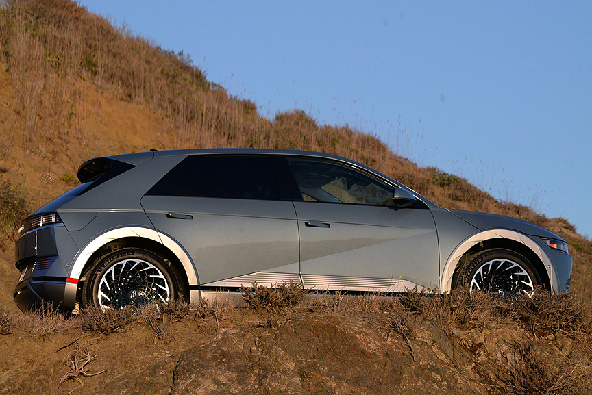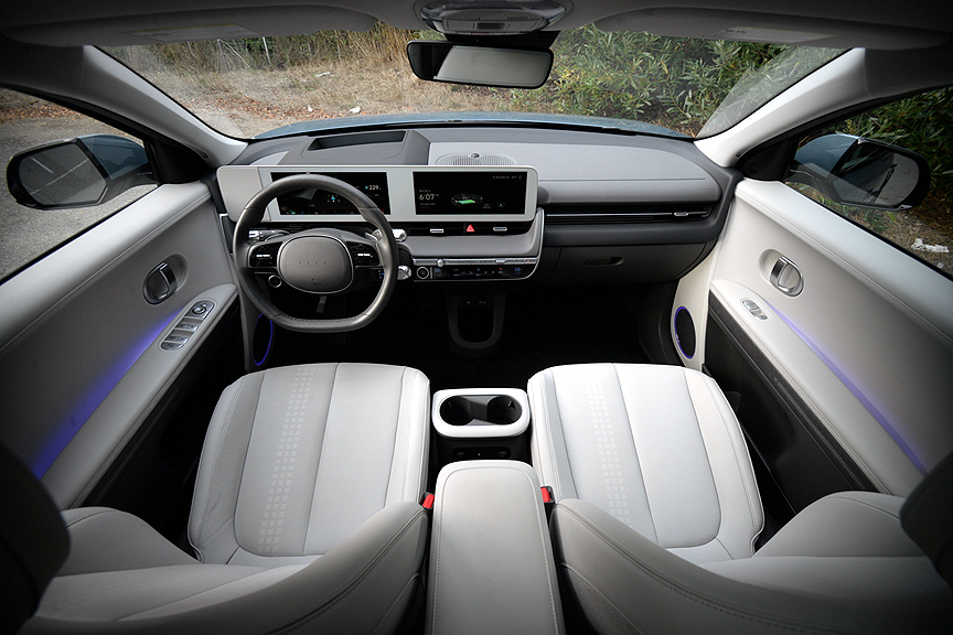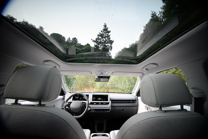 If you are currently shopping for an electric vehicle, you can do no better than Hyundai's 2024 Ioniq 5 LIMITED AWD. From the moment we stepped into its brilliantly designed cabin, we were intrigued with this product. Here are but a few highlights from our first short drive. The simple act of closing the door from the driver's seat has been thoroughly re-imagined by Hyundai. Instead of reaching for a tiny door pull or spindly armrest, you simply can simply lay your left hand anywhere along the open space trough that separates the full-length arm rest from the door to tug it shut. Once ensconced in the exceedingly handsome and comfy "Memory Power Driver's Seat with Relaxation Function," you notice that Hyundai has provided a swiveling leg rest for extra support when needed. You then address the perfectly sensible array of actual physical switches on the dash which are augmented by a 12.3-inch digital screen to monitor Navigation duties as well as entertainment choices. Thankfully, the basic climate control functions are still switch accessible.