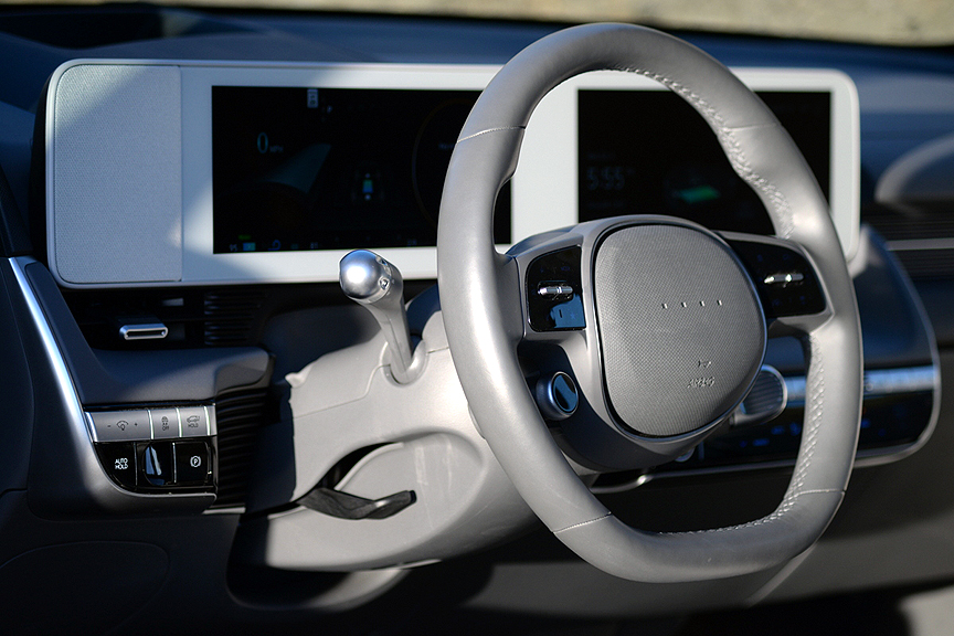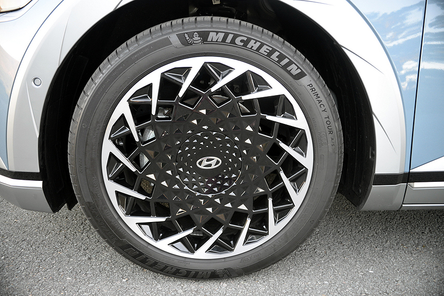Driving dynamics are excellent. Like Porsche, Hyundai has put the Drive Mode dial on the steering wheel spoke, where it belongs for instant access when you need it. The 20-inch alloy rims Hyundai has selected for the Limited model are startlingly reminiscent of the BBS honeycomb alloys Porsche bolted on their 935 Turbo racers back in the day. In the Ioniq application these rims support a set of fat Michelin Primacy Tour all-season radials (255/40R20) that contribute good handling as well as a low profile stance to the Ioniq.