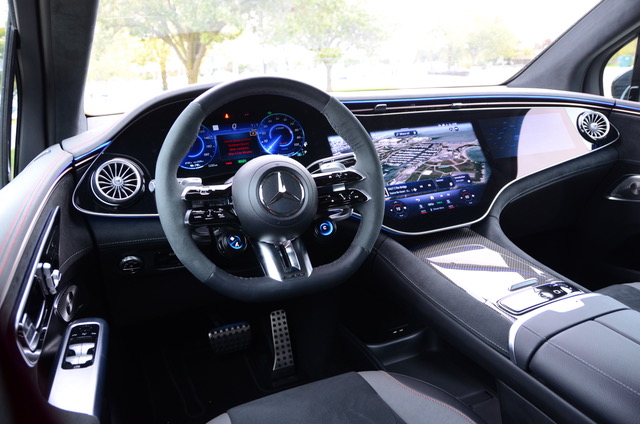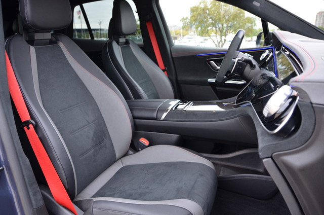 More fun and entertainment comes from the EQE’s drive system. The fully-electric, battery-powered M-AMG EQE SUV has a motor at each axle. A combined output of 617-HP and 701 lb-ft of torque and Mercedes’ 4Matic all-wheel drive makes for a very quick vehicle. The AMG Dynamic Plus package, a $4,000 option, increases output to 677-HP and 738 lb-ft. Mercedes says the AMG EQE SUV will accelerate from 0 to 60 mph in 3.4 seconds with the “Race Start” feature.