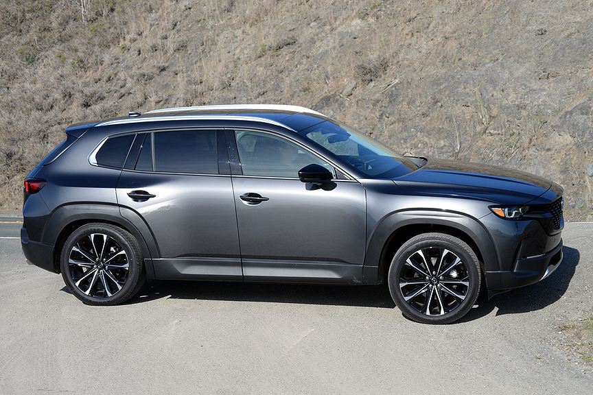 Mazda is quickly transitioning from a niche builder of sports cars and sporty sedans to a full line purveyor of SUVs. One of their top new products is the CX-50, now entering its second year of production for 2024. This compact SUV, which offers standard all-wheel-drive on all models, is available in basic form with a 187hp 4-cylinder gas engine. The cheapest CX-50 you can buy is the S Select model which carries a base price of $31,675. But you don't want this underpowered model, or any of its more expensive derivatives (S Preferred, S Premium, S Premium Plus) which range in price all the way to $38,875. Rather, the CX-50 you want is a twin scroll turbocharged model, which offers an inline-4 displacing 2.5 liters and producing 227hp and 310lb.-ft. of torque. This fine and economical engine (25 MPG combined city/highway) propels the light weight (3,866lbs.) SUV to 60mph in a very respectable 6.6 seconds. This combo not only clears the standing start quarter mile in 15.1 seconds at 91mph, but also allows you to tow a trailer weighing 3,500 pounds.