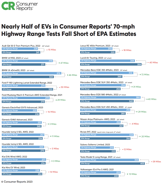 Consumer Reports: Nearly Half of EVs in Our Highway-Only Range Test Fell Short of Their EPA Estimates